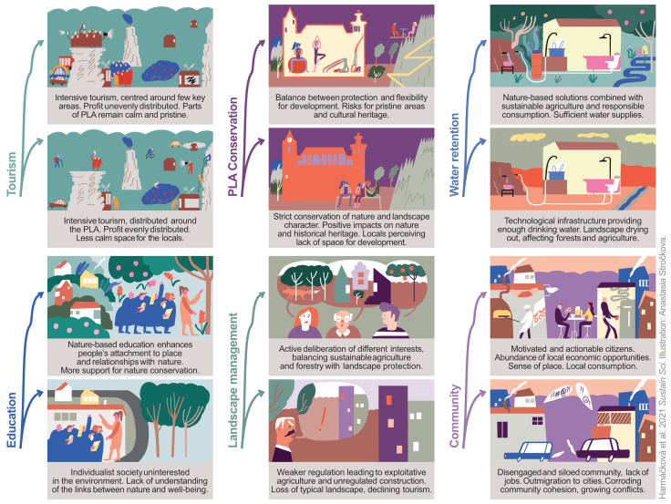 Tyto otázky jsme si položili v nedávném projektu zaměřeném na chráněné krajinné oblasti v Česku. V sérii seminářů zahrnujících místní zúčastněné strany a aktéry (stakeholders) působící v zemědělství, turismu, ochraně přírody a mnoha dalších odvětvích, jsme analyzovali: