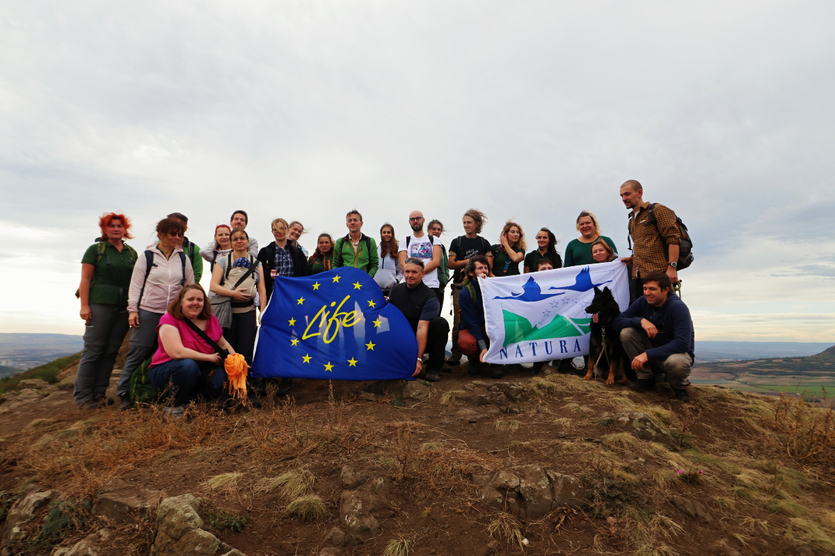 After a one-year break, the monitoring team and representatives of all five project partners (AOPK, COŽP, MŽP, CZG, SoWa) went altogether on the 20 th of October to the Bohemian Central Uplands, the field part of the mission. The monitoring team and representatives of project partners visited four Special Areas of Conversation (SAC), namely Kleneč, Březina, Oblík – Srdov – Brník and Sinutec – Dlouhý hill. The weather was great to visit the terrain, therefore nothing prevented the instructive and interesting interpretations of experts from the AOPK CR, the Administration of the Protected Landscape Area of České středohoří and representatives of various land owners (Lesy ČR, the village of Libčeves).