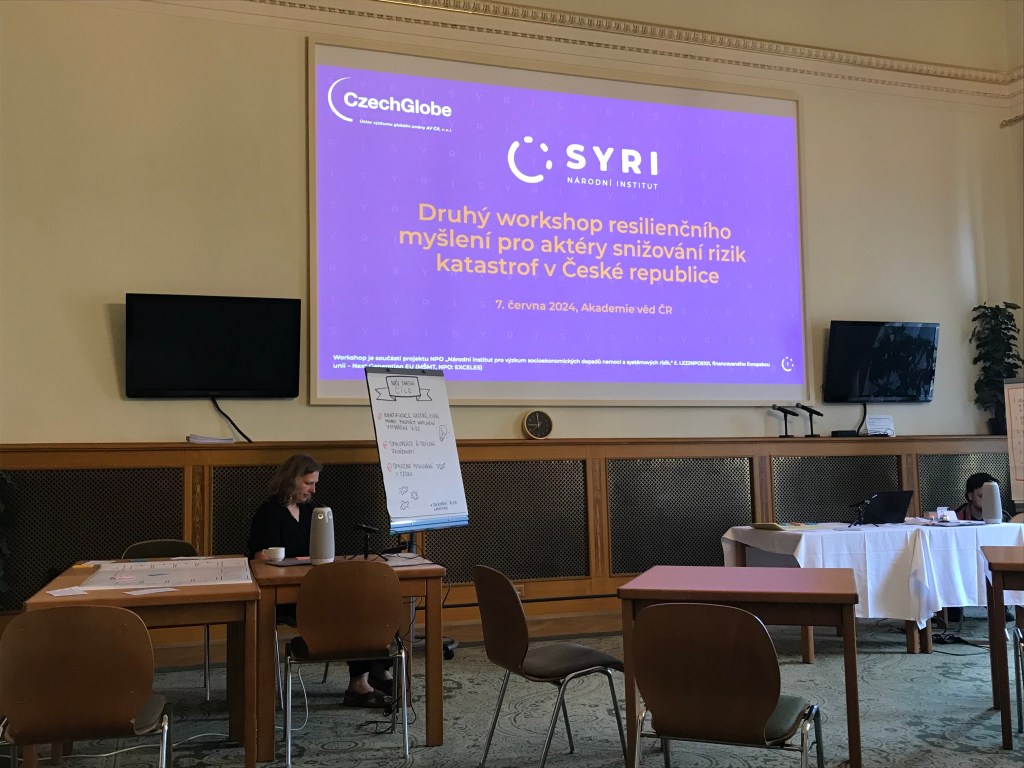 Workshop resilienčního myšlení: cesty k realizaci vizí ve snižování rizik katastrof proběhl 6. června 2024 v prostorách hlavní budovy Akademie věd ČR v Praze. Workshopu vedeného výzkumným týmem Národního institutu SYRI a Oddělení sociálně-ekologické analýzy (SE lab) Ústavu pro výzkum globální změny AV ČR se zúčastnilo kromě výzkumného týmu také deset odborníků a odbornic na snižování rizik katastrof v Česku. Vedle lidí z veřejné správy byli přítomni zástupkyně a zástupci výzkumu, neziskových organizací nebo i jednotlivci, kteří byli přírodní katastrofou přímo zasaženi jako občané.