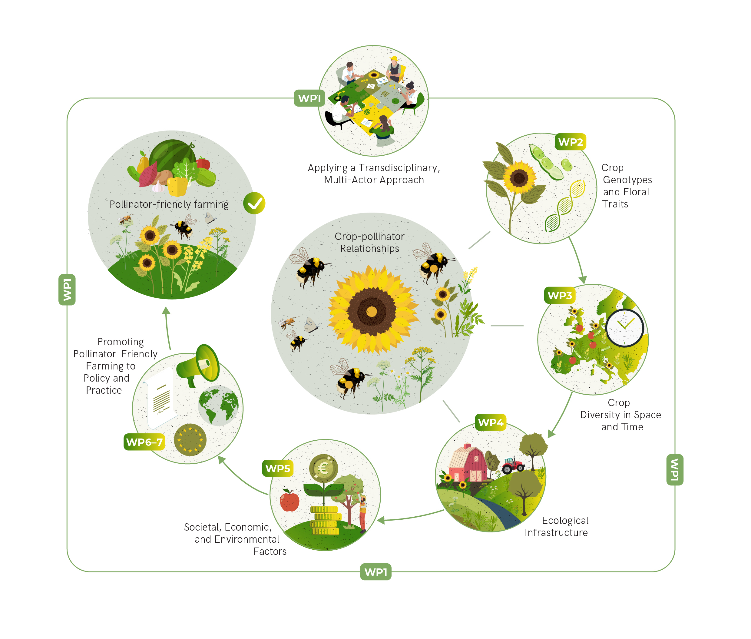 - Spolupracovat s komunitou složenou z více aktérů na výzkumu a řešeních na podporu zemědělství šetrného k opylovačům.