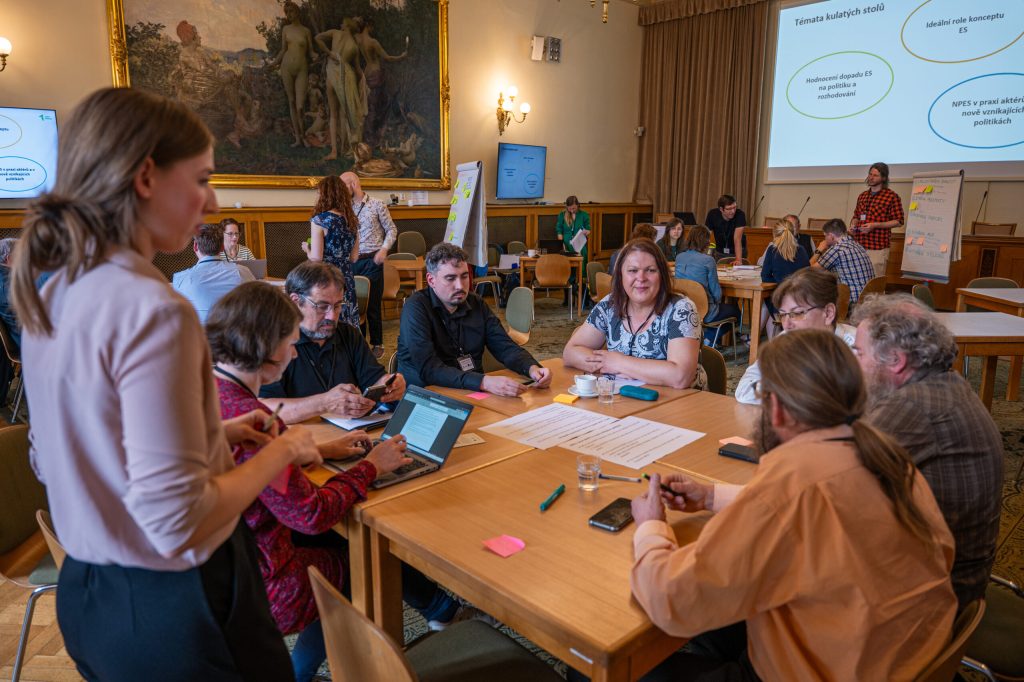 V diskusní části byly připraveny celkem 3 kulaté stoly, kdy u každého stolu bylo jiné téma k diskusi. U prvního stolu účastníci společně reflektovali praktické dopady konceptu ekosystémových služeb na tvorbu politik, rozhodovací procesy a každodenní práci institucí. U druhého stolu byla diskutována ideální role konceptu ekosystémových služeb v dané instituci – zdali by měl být používán jako nástroj komunikační, vzdělávací, argumentační, strategický a plánovací, nástroj pro ochranu ekosystémových služeb nebo jako nový pohled (na problémy životního prostředí, ochranu přírody apod.). U třetího stolu se potom diskutovalo o tom, jakou roli může NPES sehrávat jako národní platforma v kontextu nově vznikajících strategií a politických rámců různých institucí napříč sektory.